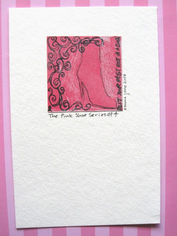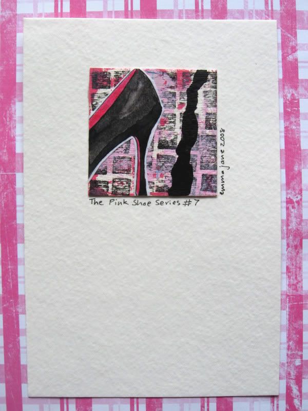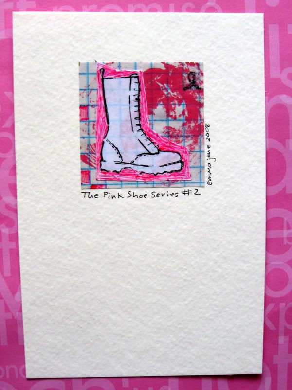Here is a sneek peek of the, 'Pink Shoe,' mini mixed media pieces I've been creating to help with my fundraiser...soon to be available here!!!